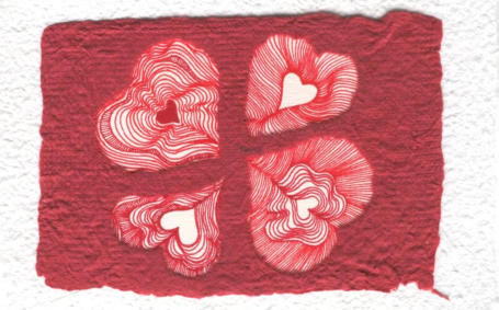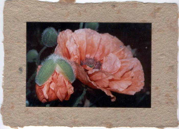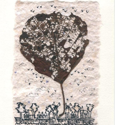 op geschept papier.